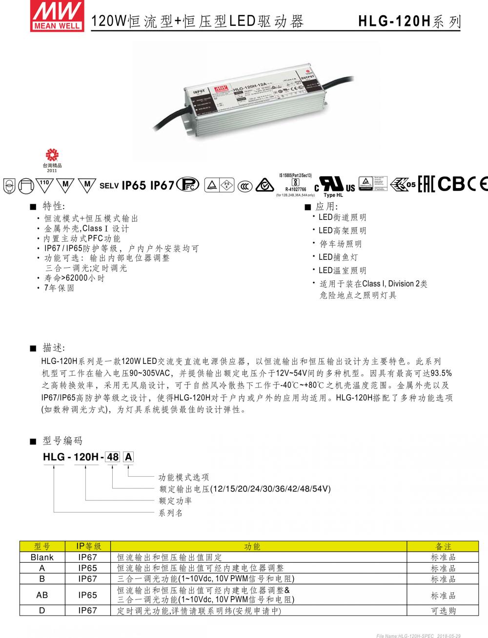 網站首頁:臺灣明緯電源 > LED電源 > HLG系列