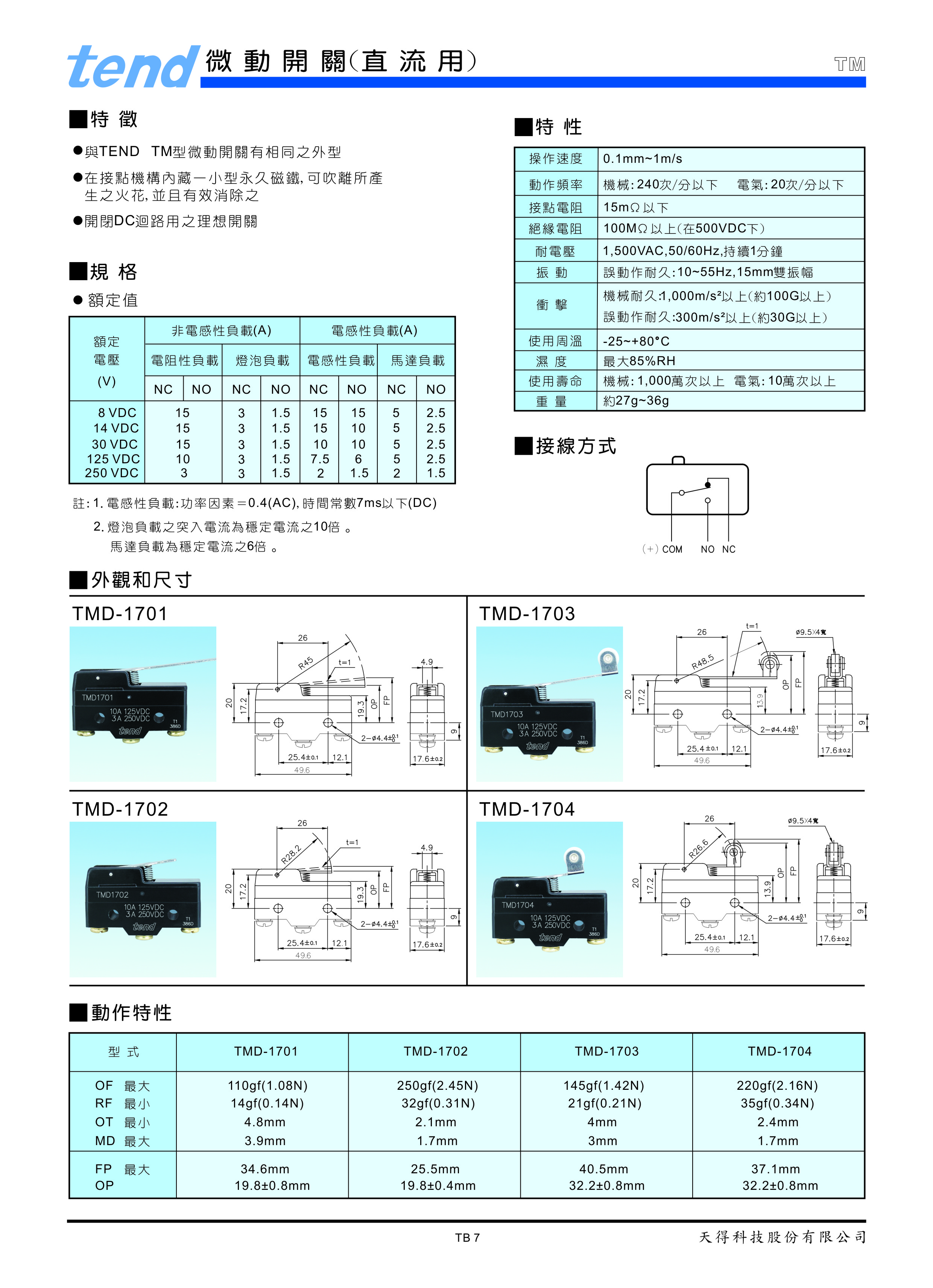 網(wǎng)站首頁:臺灣天得產(chǎn)品 > 微動開關(guān) > TM系列
